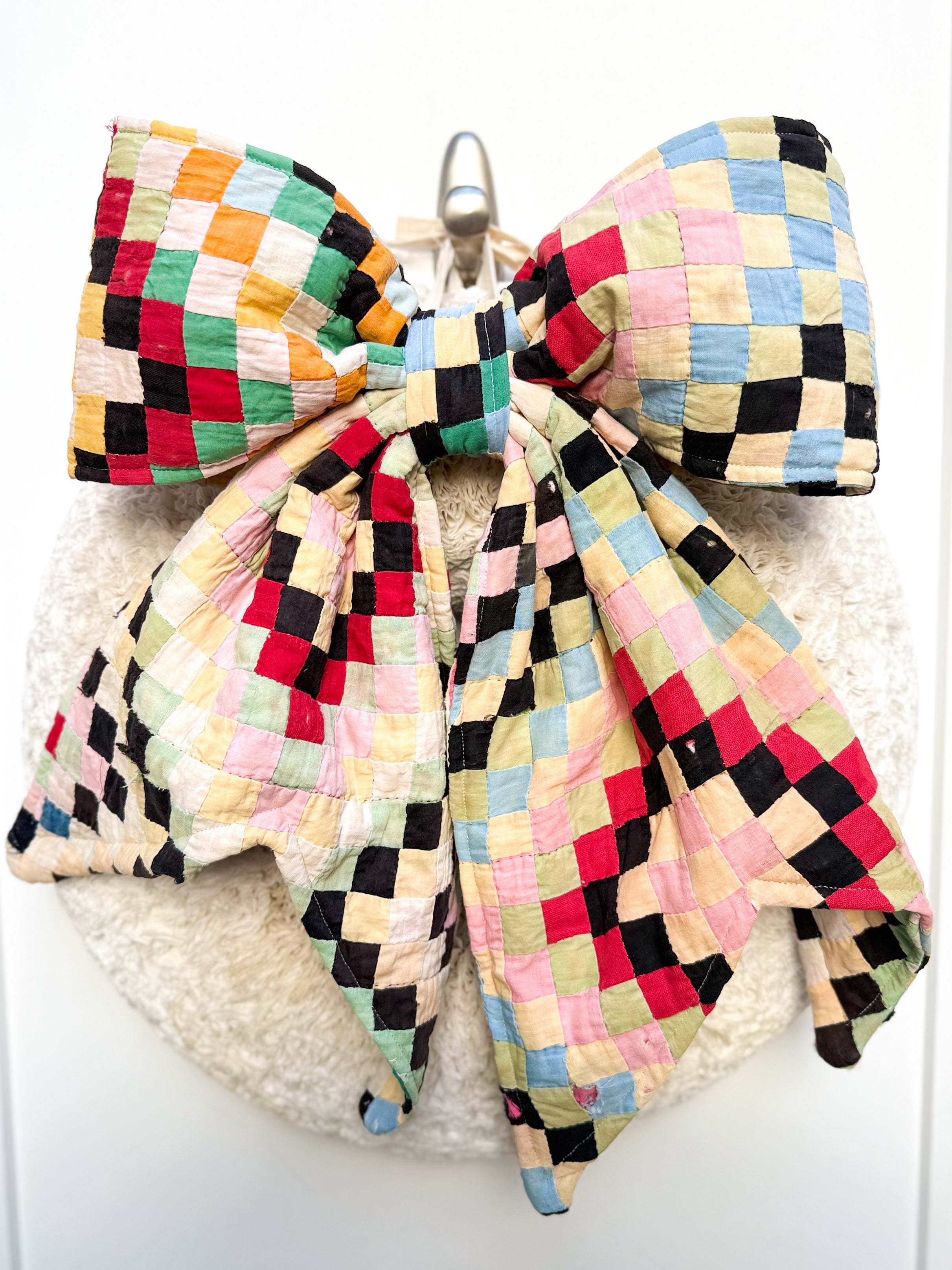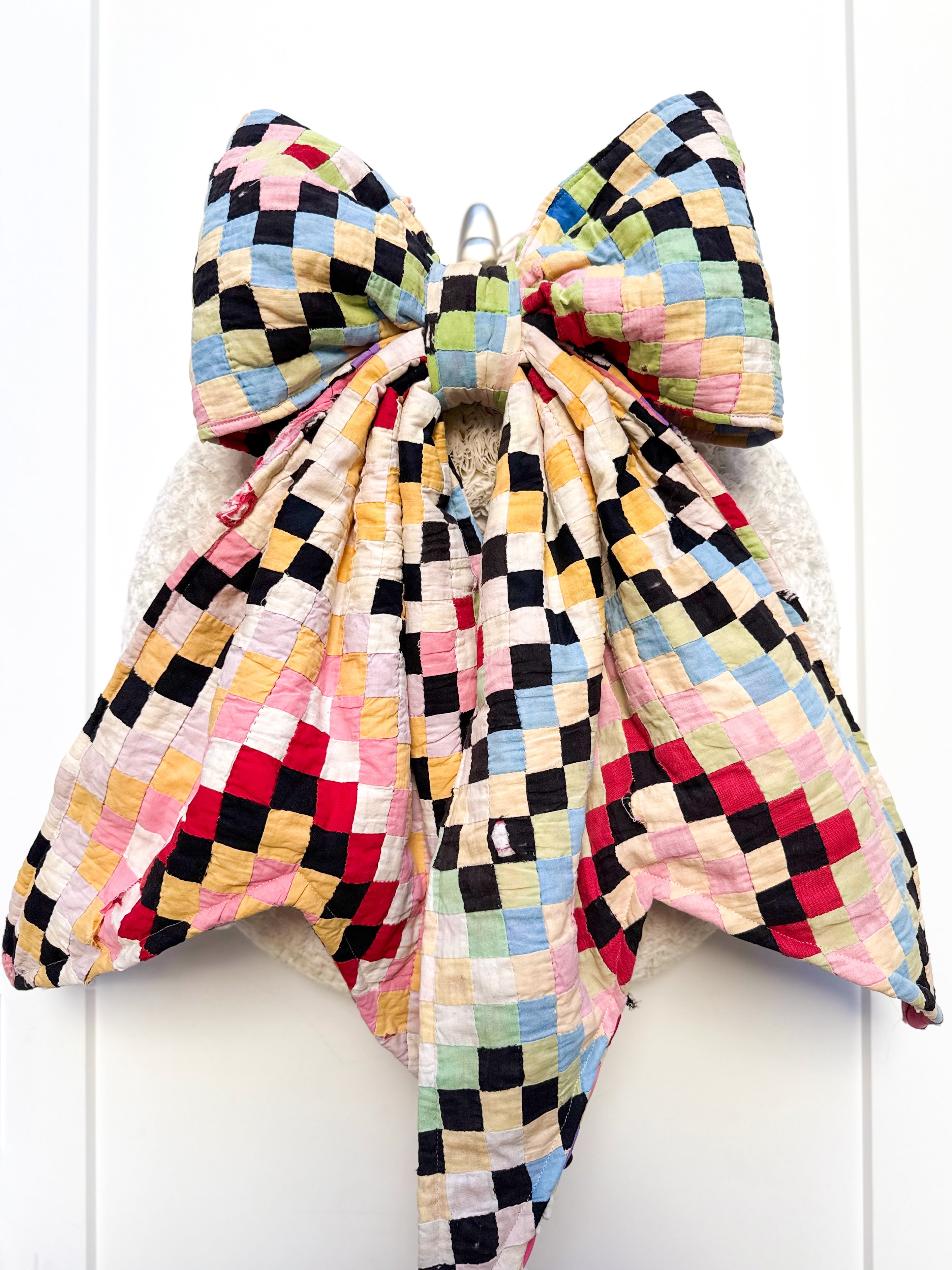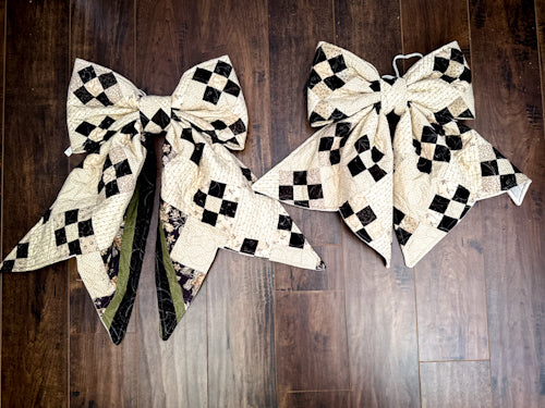 Each of our quilted bows is one-of-a-kind—handmade using repurposed vintage quilts. The placement of patterns, colors, and stitching varies with every bow, making yours as unique as the quilt it came from.